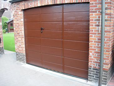 Het aanslagprofiel rondom de deur lakken we in dezelfde kleur als uw poort. Zo wordt de deur minder geaccentueerd en bijgevolg minder benadrukt in het geheel.