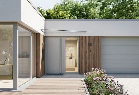 In combinatie met de Hörmann ThermoSafe MatchDecor voordeur in vier decors biedt dit een perfect op elkaar afgestemde look voor een harmonieuze uitstraling van zowel garage- als voordeur.