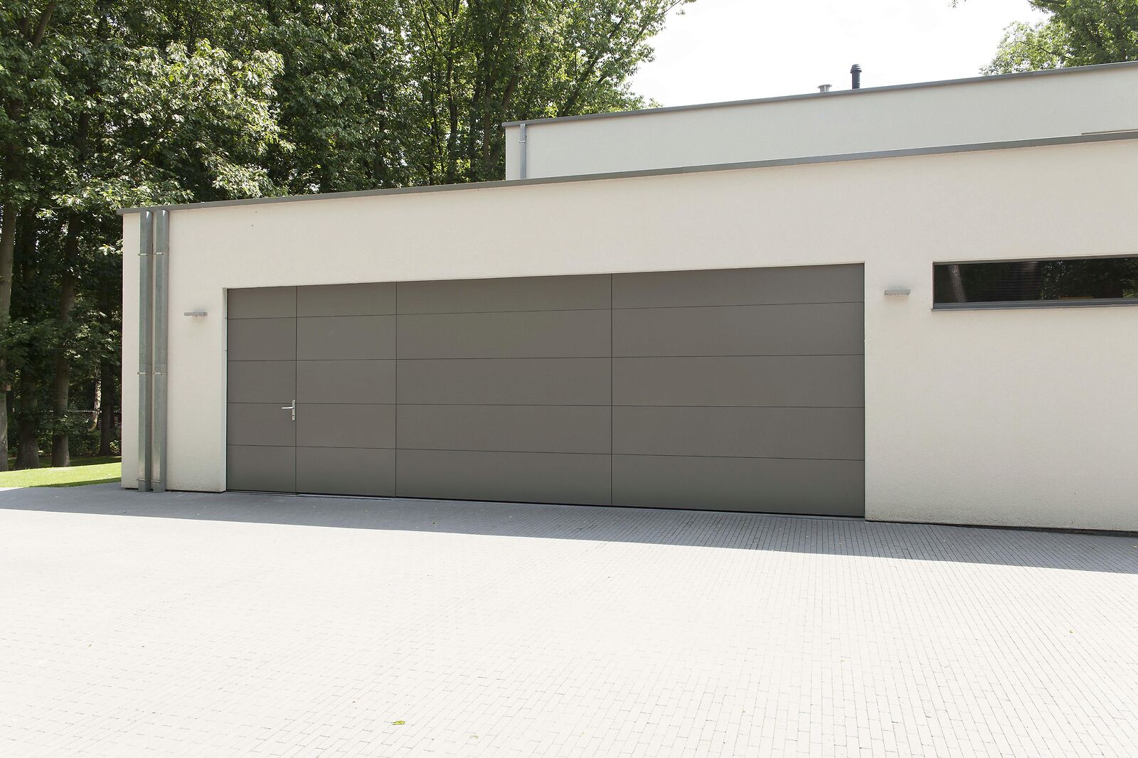 Een sectionaalpoort bestaat uit verschillende secties die verticaal naar boven schuiven bij het opengaan en bovenaan kantelen. Zo’n poort neemt nergens extra plaats in beslag.