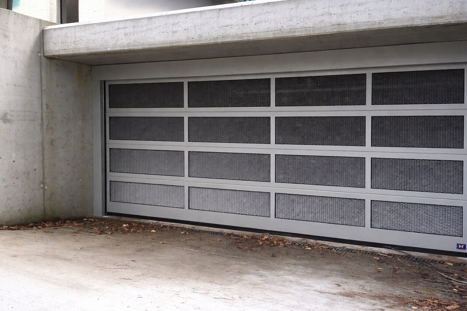 Ventilerende industriepoorten met strekmetaal of geperforeerde panelen zijn vaak een must in ondergrondse parkeergarages.