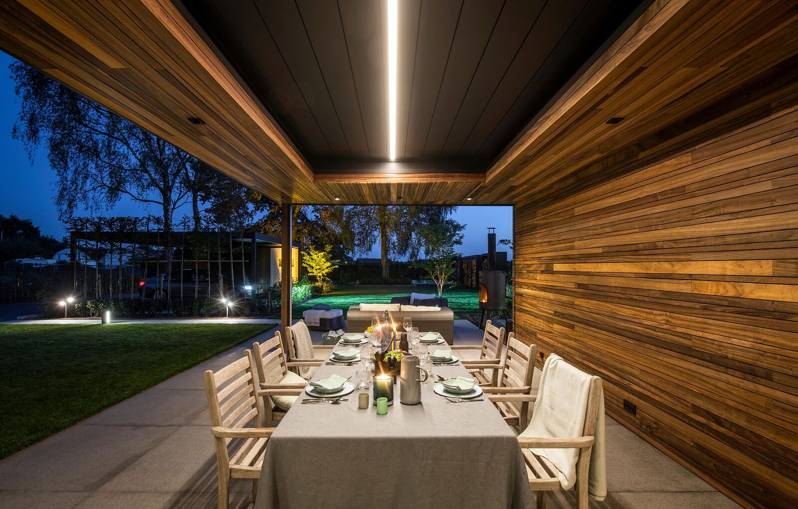 Het resultaat is een overdekt terras die echt aanvoelt als een verlengstuk van je woning. Het oogt strak, past mooi bij de architectuur en dit zonder visuele onderbreking.