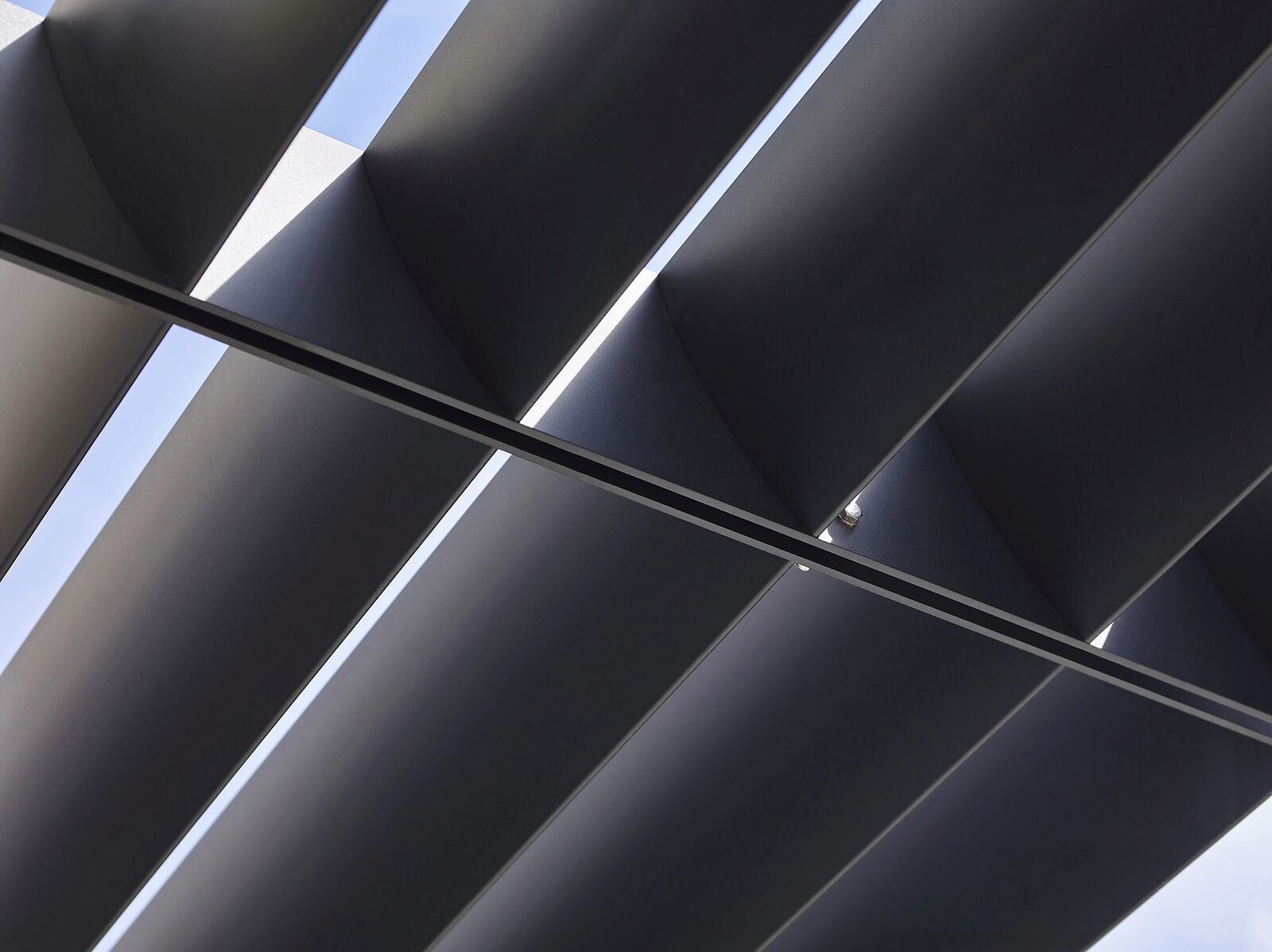 Dankzij de flexibiliteit in maatvoering en opbouw is deze structurele zonwering aluminium inzetbaar op verschillende schaalniveaus.
