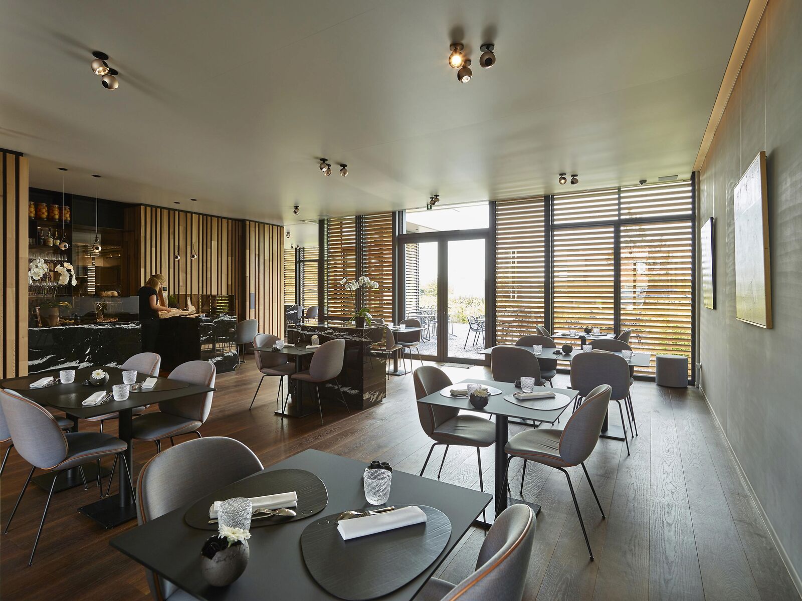 Op warme dagen hou je de zon buiten door de panelen voor de ramen te schuiven. Wil je in de winter of op donkere dagen maximaal licht binnenhalen, dan schuif je ze gewoon weer weg.