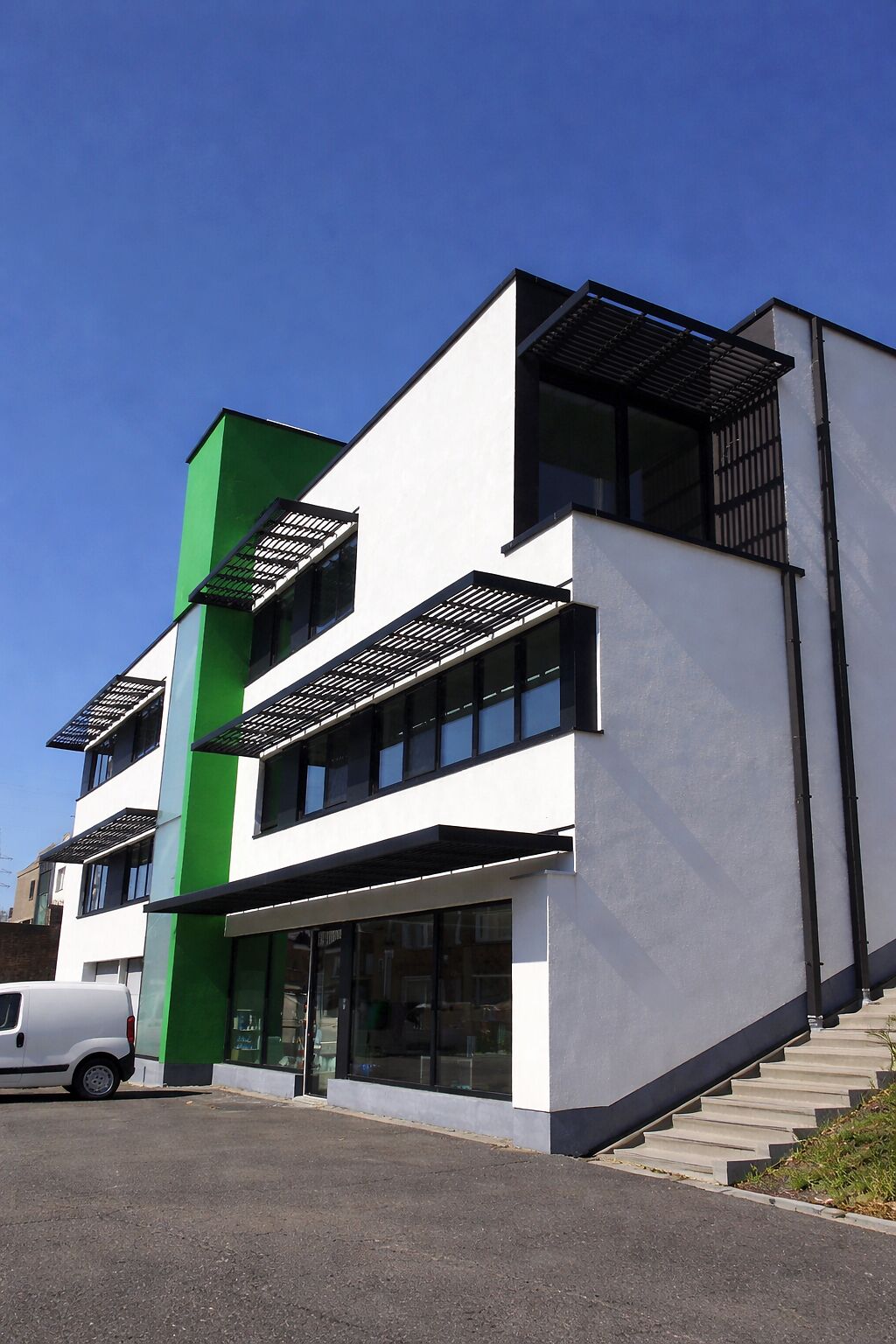 Doordat de zon wordt tegengehouden vóór ze het glas bereikt, wordt de warmteontwikkeling in het gebouw aanzienlijk beperkt.