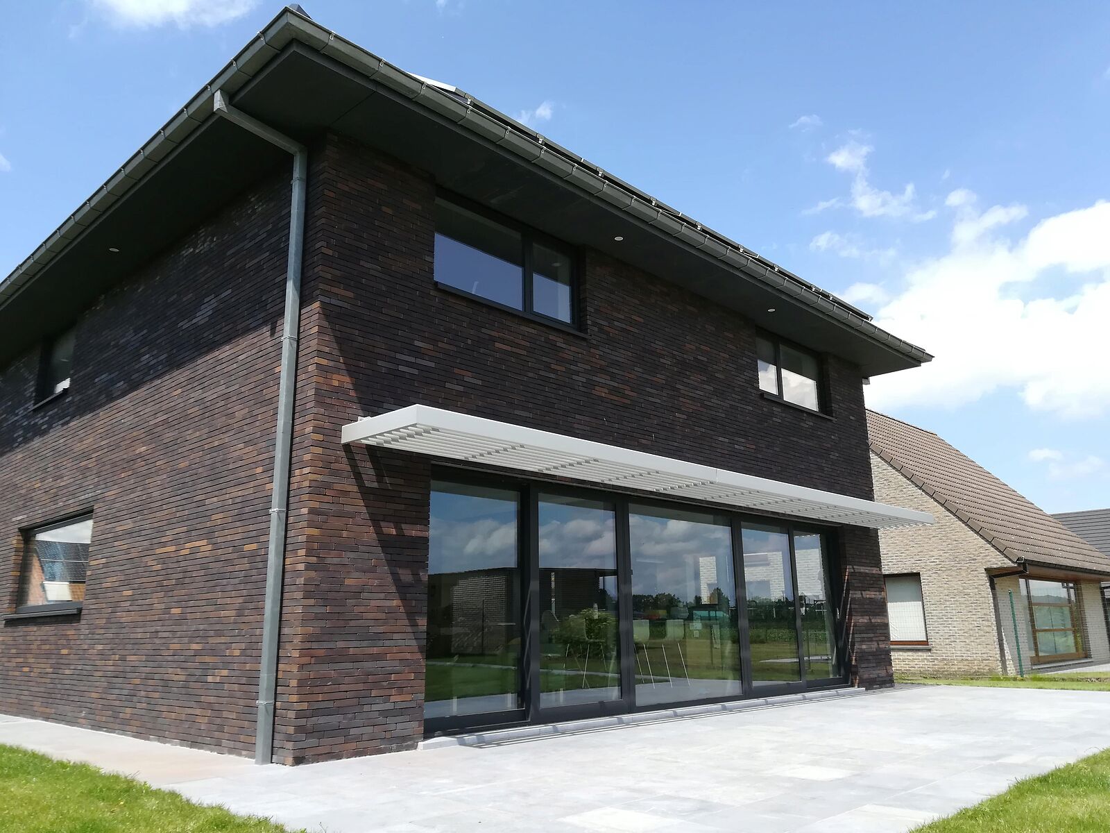 Deze structurele aluminium zonwering wordt rechtstreeks op de gevel of boven het raam geïntegreerd. Zo ontstaat een architecturale oplossing die niet alleen bescherming biedt tegen oververhitting van jouw interieur, maar ook perfect aansluit bij het ontwerp van jouw gebouw.