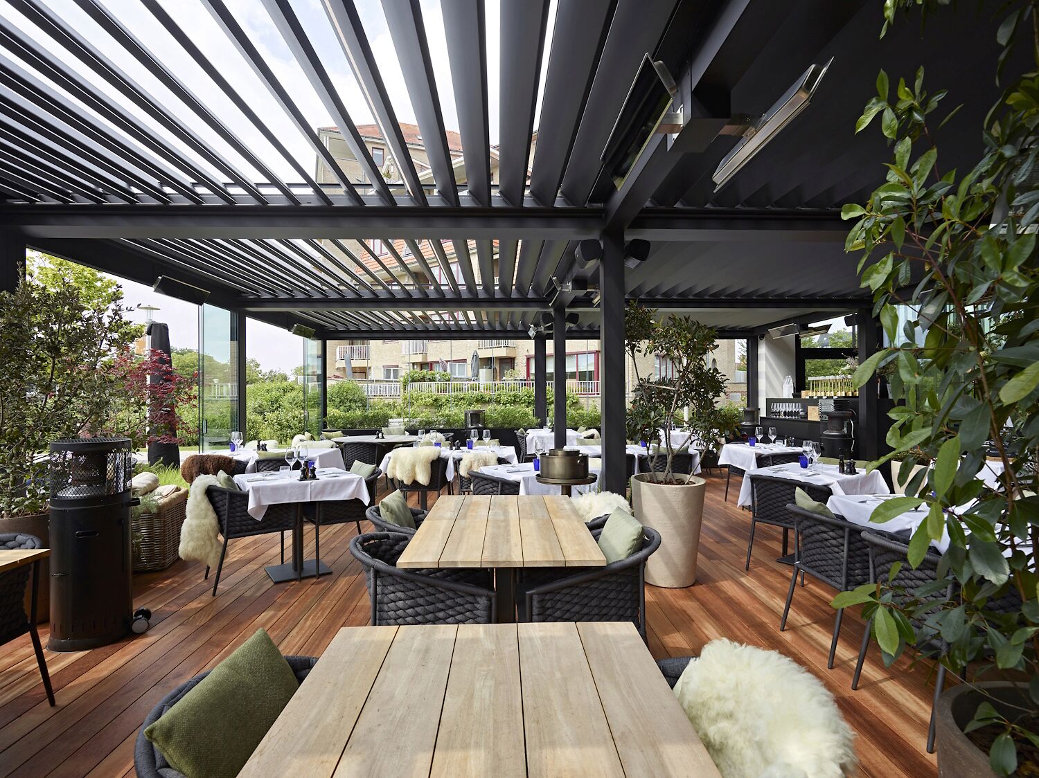 Door de zonnewering wordt oververhitting van de ruimte voorkomen en blijft het binnenklimaat onder de overkapping optimaal. Gasten worden niet verblind tijdens het tafelen en kunnen in alle comfort genieten van hun maaltijd en het uitzicht. Tegelijk blijft er voldoende natuurlijke lichtinval behouden, wat bijdraagt aan de warme en uitnodigende sfeer.