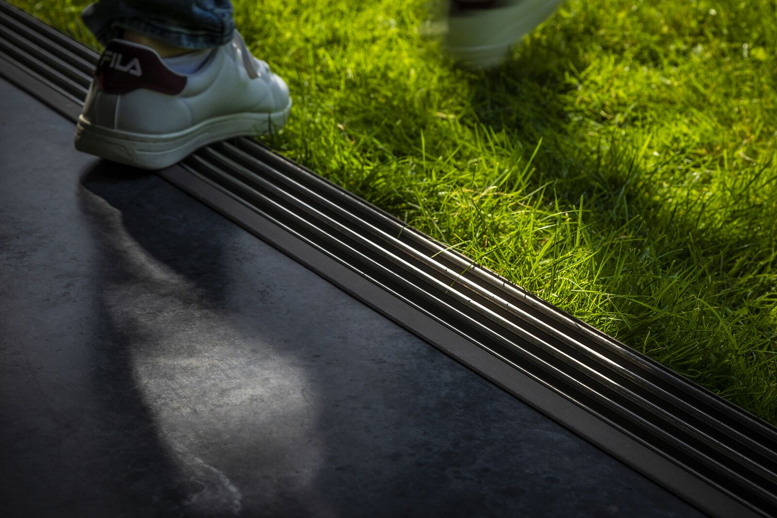 Bovendien werden de aluminium onderprofielen van de glazen wanden volledig verzonken in de vloer, wat zorgt voor een naadloze overgang en een strak visueel resultaat.