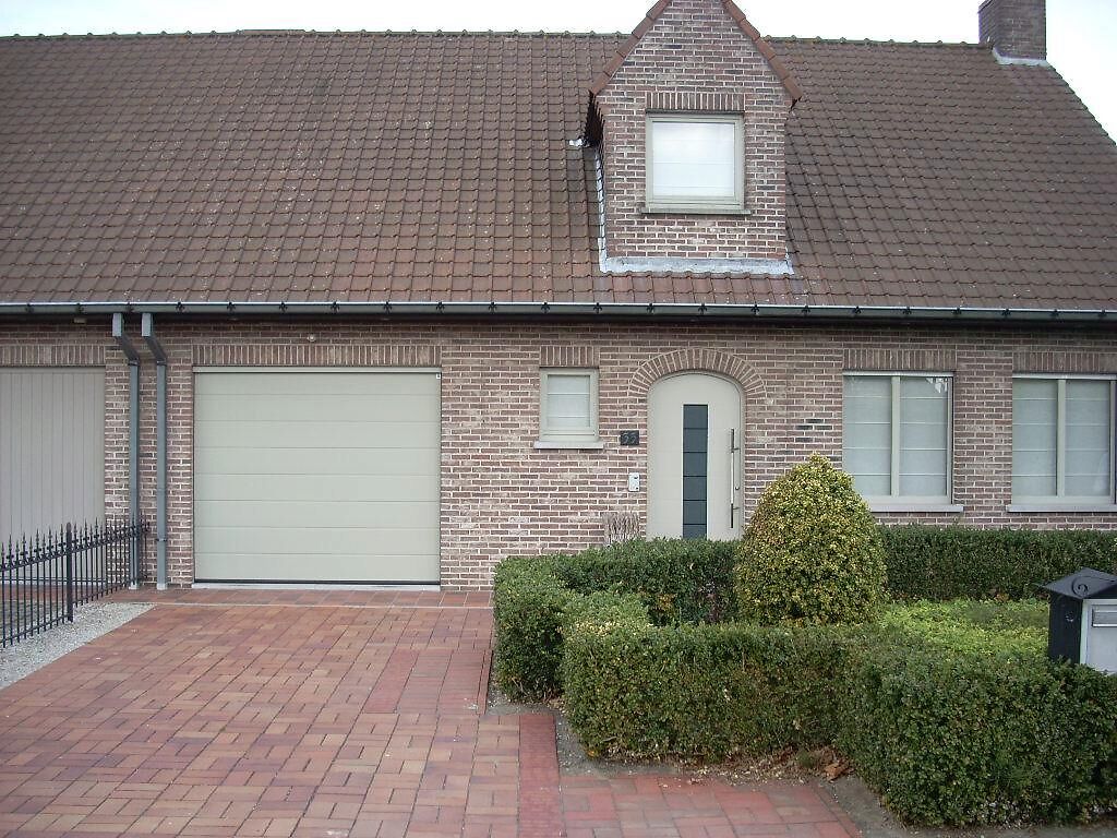 Naast de voordeur werd ook de garagepoort vernieuwd, wat zorgt voor een uniform en harmonieus geheel.