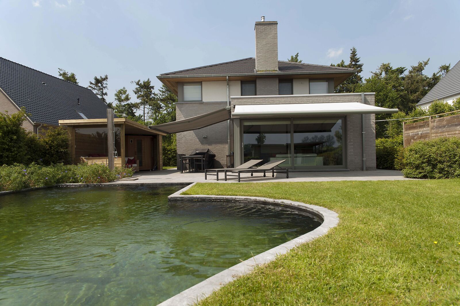 Bij deze hedendaagse woning realiseerde Torck Exterieur twee stijlvolle zonneschermen die perfect aansluiten bij de architectuur en de omgeving.