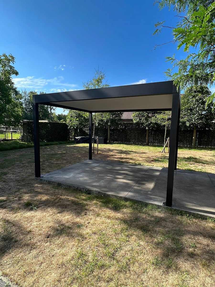 Deze elegante overkapping kan op het dakterras, vrijstaand in de tuin, op 4 palen of tegen uw woning aangebouwd worden. Hou er wel rekening mee dat het dak gesloten is, waardoor u wel wat lichtverlies zal hebben in uw woning.