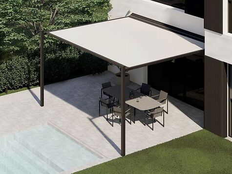 De Lapure terrasoverkapping combineert elegantie met functionaliteit. Het waterdichte, lichtdoorlatende doek beschermt je tegen zon en regen, terwijl de slimme waterafvoer volledig in de palen is geïntegreerd. Dankzij het ontbreken van een storende voorbalk geniet je van een open, panoramisch zicht en een luchtig gevoel op je terras. Met zijn tijdloze, minimalistische vormgeving past de Lapure moeiteloos bij elke woningstijl – van modern tot klassiek, van strakke villa tot charmante pastorijwoning.